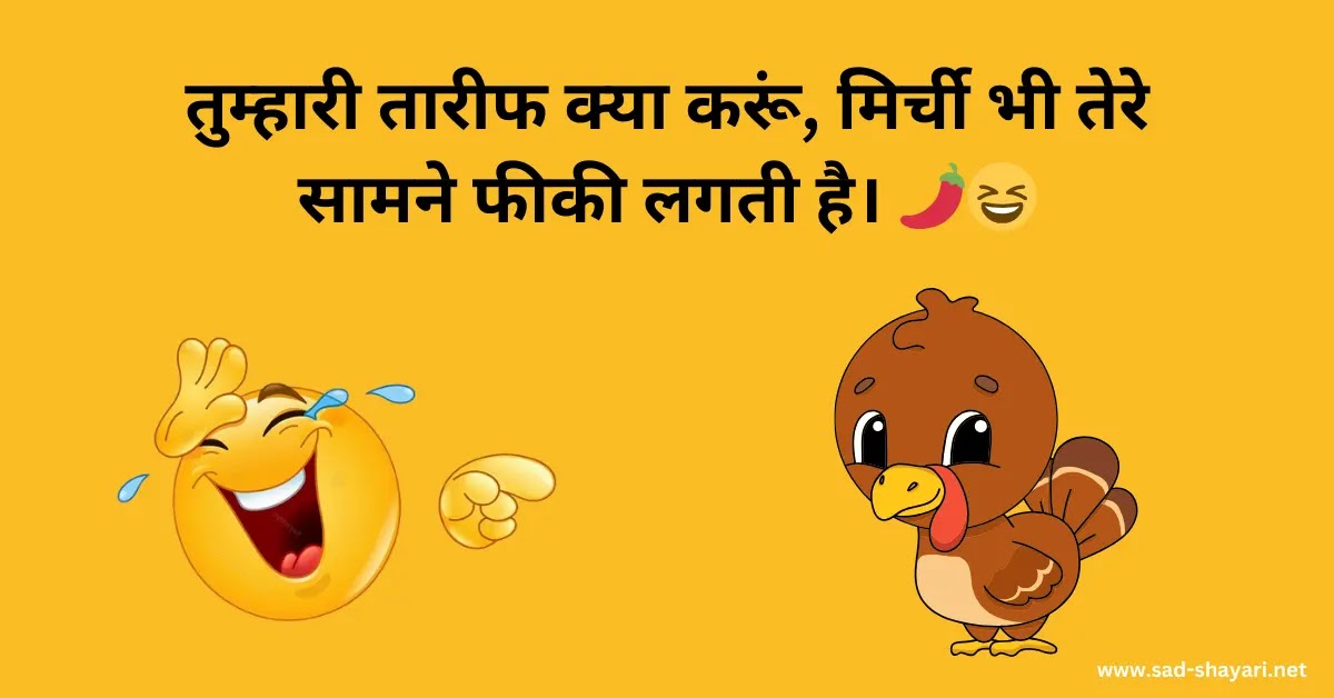 तुम्हारी तारीफ क्या करूं, मिर्ची भी तेरे सामने फीकी लगती है। 🌶️😆